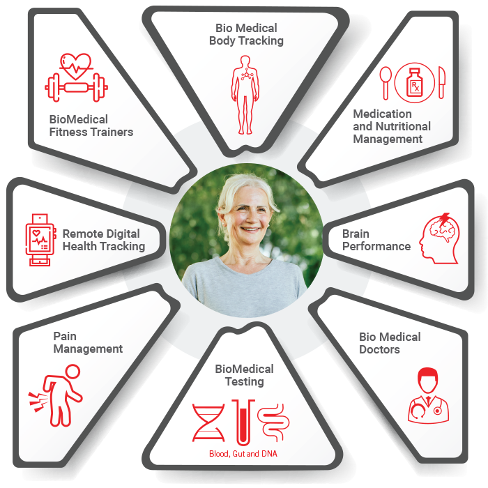 We create a personalized biomedical fitness plan, seamlessly integrating your bone and muscle care into our advanced Senior Biomedical Healthcare Ecosystem. Our system tracks your biomedical and physical health in real time, analyzes key biometrics, and continuously adjusts your program to refine goals. With expert Biomedical Fitness Trainers and Doctors, we ensure optimal health, strength, and performance at every step.